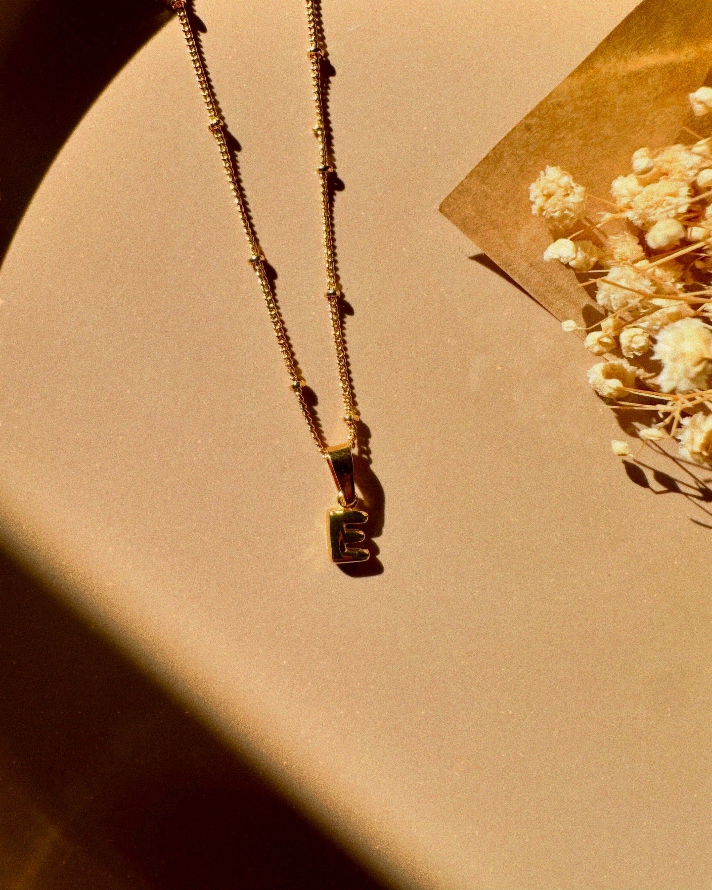 Cadena con balines, un diseño único e infaltable, perfecto para combinar con más cadenitas. ¡Puedes usarla sola o con la letra que elijas!